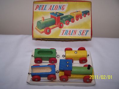 VINTAGE CHILDS BOXED WOODEN TRAIN SET VERY V G C