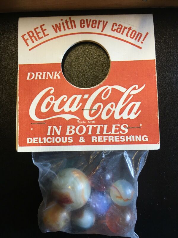 Title (ebay affiliate link): Vintage 50''s Drink Coca-Cola In Bottles Promo Bag Of Marbles. New