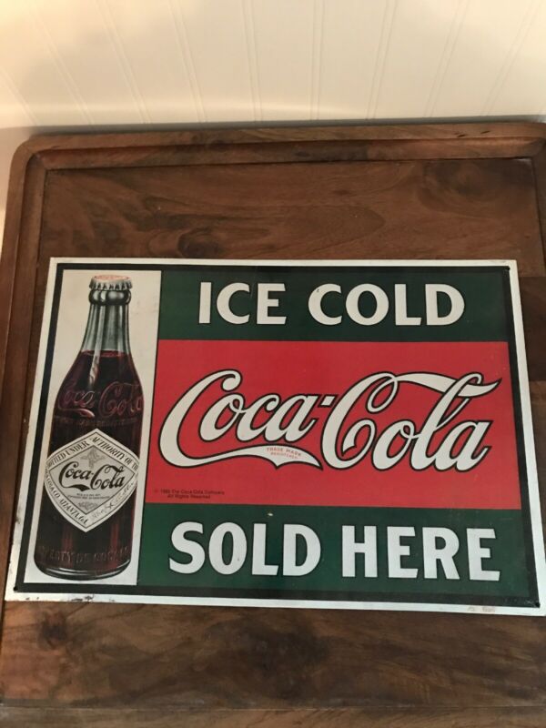 Title (ebay affiliate link): Ice Cold Coca Cola Sold Here Advertising Vintage Retro Decor Tin Sign 1993