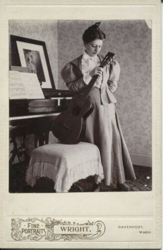 Title (ebay affiliate link): Cabinet Photo Woman with Guitar Davenport Washington 1890s by Wright