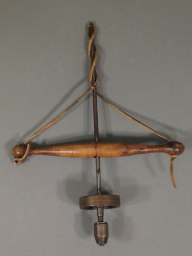 Title (ebay affiliate link): Antique Hand Turned Wood Brass & Steel Bow Drill With Adjustable Chuck