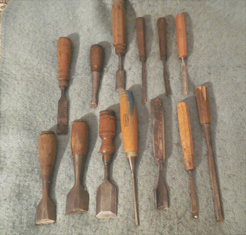 Title (ebay affiliate link): 13 Older Chisels + Gouges 13 Pcs Stanley Witherby Marples Winchester Swan Sorby