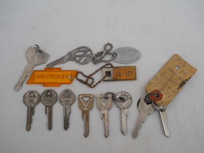 Title (ebay affiliate link): 10 VINTAGE KEYS & KEYCHAINS CHEVROLET FORD VW MORE