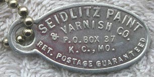 Title (ebay affiliate link): VTG IDENITY KEYCHAIN FOB SEIDLITZ PAINT KANSAS CITY MO