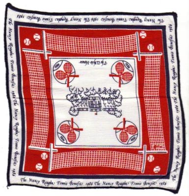 FRANKIE WELCH, NANCY REAGAN, TENNIS BENEFIT HANKERCHIEF