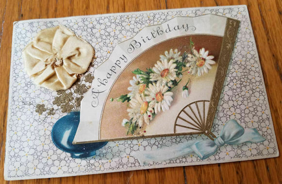 Title (ebay affiliate link): Daisies Decorating Fan on Old Birthday PC by Attached Flower Made of Real Ribbon