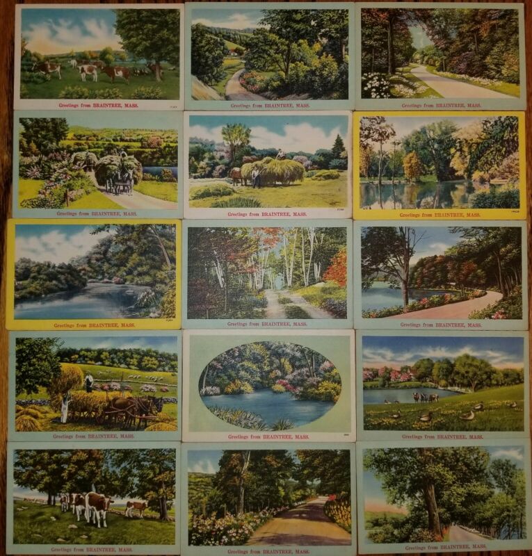 MATT''S STAMPS Lot of 15 Vintage Postcards UNUSED "Greetings from Braintree Mass"