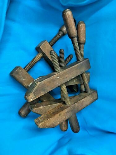 Title (ebay affiliate link): 3 ANTIQUE Wood Clamps Woodworking Carpentry NAMED
