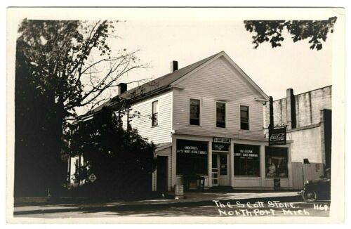RPPC Northport MI - The Scott Store Groceries Coca Cola Sign 1930/40s postcard