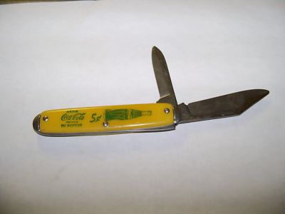 Title (ebay affiliate link): Yellow Coke Folding Knfie with a Green advertisement