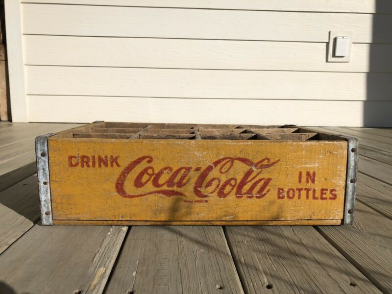 Title (ebay affiliate link): Vintage Coca Cola Crate Yellow 32 Oz Temple Chatanooga TN