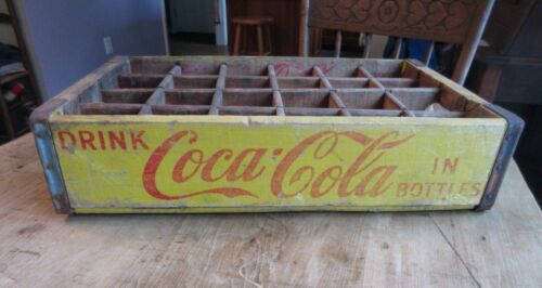 Title (ebay affiliate link): Vintage Coke Coca-Cola Yellow 1963 Chattanooga Wood Bottle Crate 24 Dividers