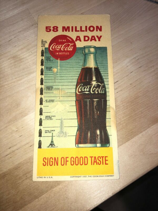 Title (ebay affiliate link): 1957 Advertising Premium Coca Cola Blotter 58 Million A Day Sold Sign Good Taste