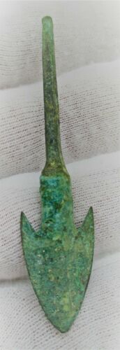 CIRCA 1500 BCE ANCIENT MYCENAEAN BRONZE LONGSHOT BARBED ARROWHEAD