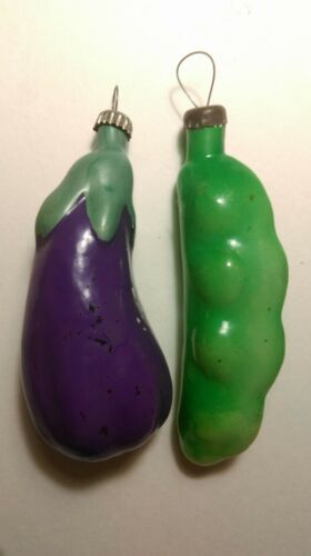 Title (ebay affiliate link): Vintage CHRISTMAS glass ornaments EGGPLANT + PEAs