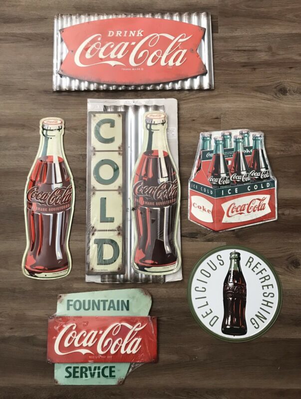 Title (ebay affiliate link): Lot Of 6 Coca-Cola Coke Tin Metal Signs Vintage Style Reproduction New & Used