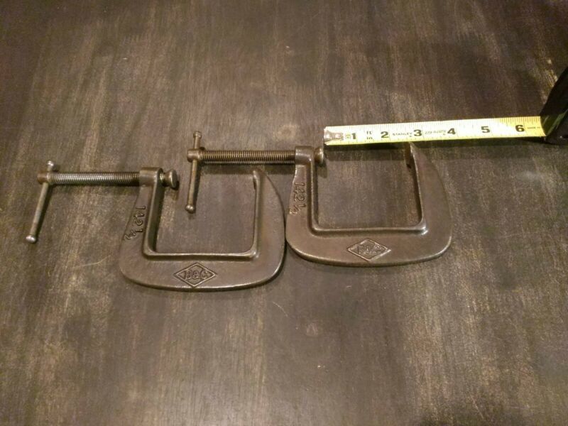 Set of 2 Vintage Brink & Cotton No.142 1/2 C-Clamps Max Opening to 2 1/2" USA