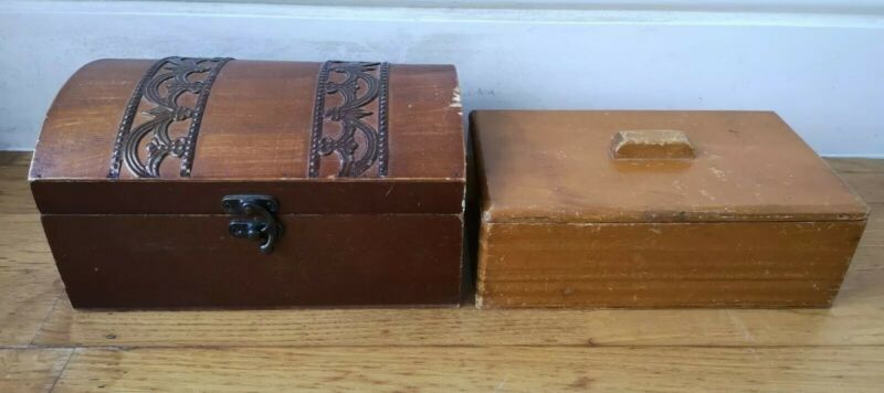 Wooden Boxes X 2 Storage Jewellery lids 21x12.5x7cm & 22x15x11cm