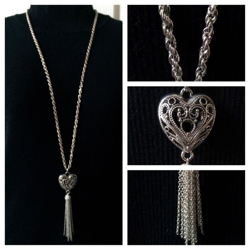 Heart Necklace New Silver Pendant Long Chain Antique Look Cute NWT Deal