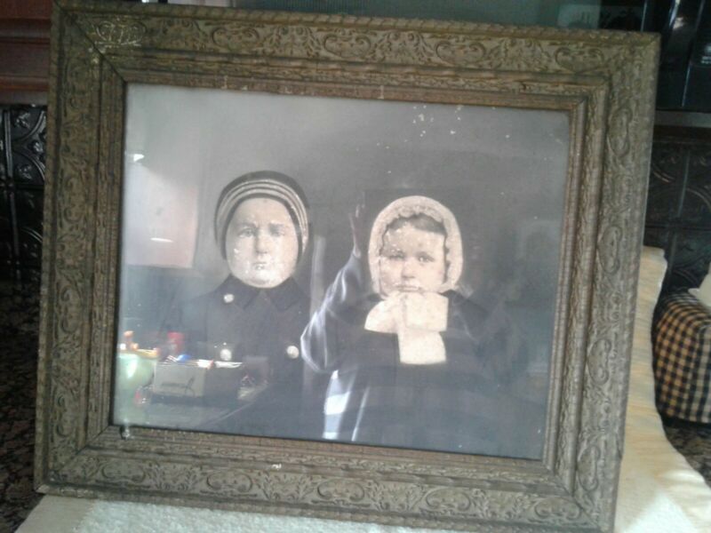 Large Antique Vintage Picture Boy And Girl Framed Glass Front