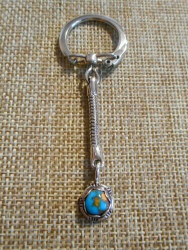 Vintage Silver Turquoise Stamped Key Chain GUC