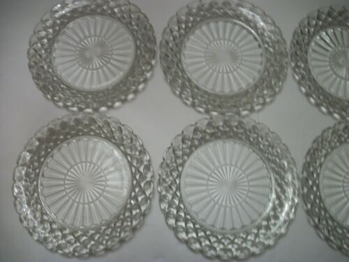 6 Anchor Hocking Waterford Waffle Crystal Depression Glass Salad Plates Vintage