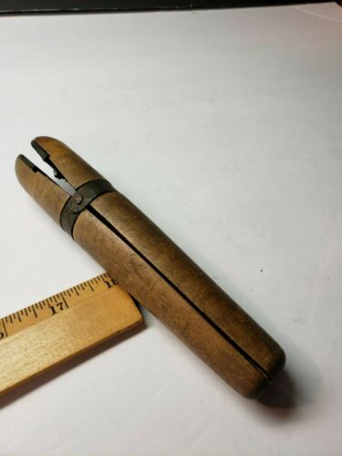 Title (ebay affiliate link): UNUSUAL VINTAGE PRIMITIVE WOODEN WITH METAL BANDING JEWELRY MAKING