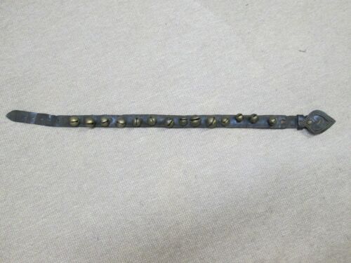 14 ANTIQUE BRASS SLEIGH BELLS 41 1/2" LEATHER STRAP ALL ORIGINAL, USED CONDITION
