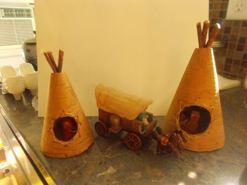 Folk Art Wood Wagon With Carved Driver&Horses& T Pees