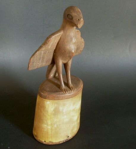 Title (ebay affiliate link): Antique Folk Art Eagle on Horn Container Hand Carved Wood Bird Box As-Is