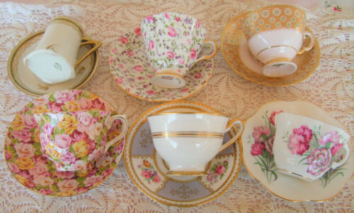 Lot of 6 Vintage Tea Cups and Matching Saucers Tea Party 5 English 1 French