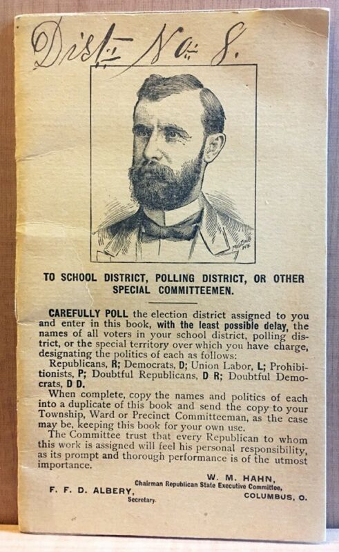 Title (ebay affiliate link): 1890 Elections - Ohio Republican State Committee Poll Canvasser Booklet