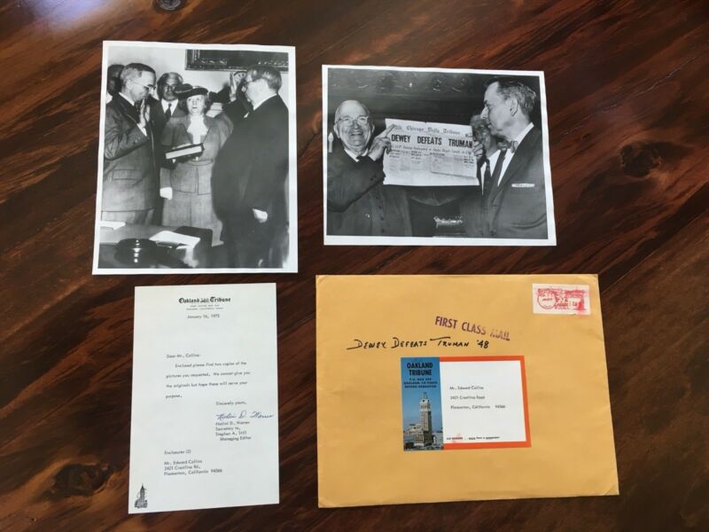 Title (ebay affiliate link): Vintage Dewey Defeats Truman Newspaper Copy Photograph Oakland Tribune FDR death