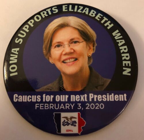 Title (ebay affiliate link): 3" Iowa Supports Elizabeth Warren Caucus for President Feb, 3, 2020 Campaign Pin