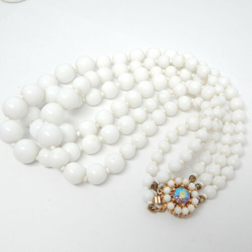 Title (ebay affiliate link): DESIGNER BERGERE GRADUATED MILK GLASS 3-DROP AURORA RHINESTONE CHOKER NECKLACE