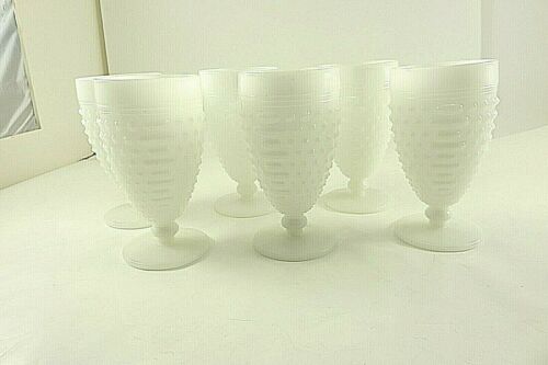 6 VINTAGE MILK GLASS HOBNAIL AND BARS FOOTED GLASSES