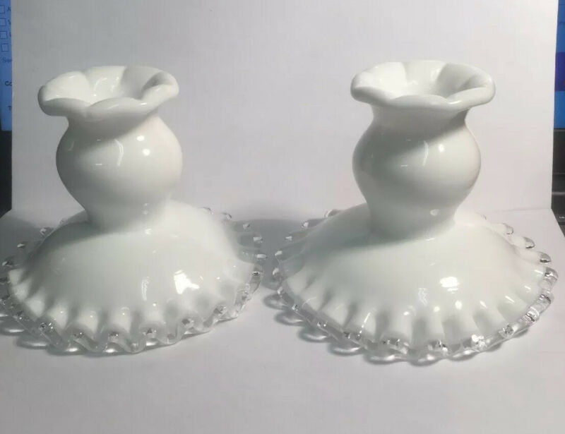 Title (ebay affiliate link): Fenton Milk Glass Candlestick Pair With Crimped Edges Not Marked