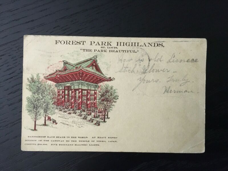 Title (ebay affiliate link): 1906 Forest Park Highlands Postcard, Undivided Back, Handsomest Band Stand