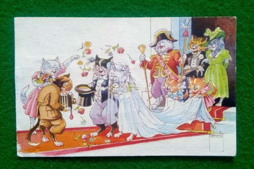 Anthropomorphic happy cats wedding GJG Collection Minouvis No 68 posted c1952
