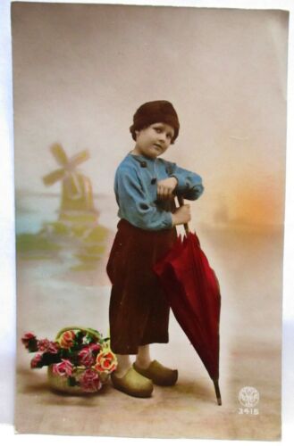 Title (ebay affiliate link): 1920s REAL PHOTO POSTCARD LITTLE DUTCH BOY WITH UMBRELLA, HAND COLORED