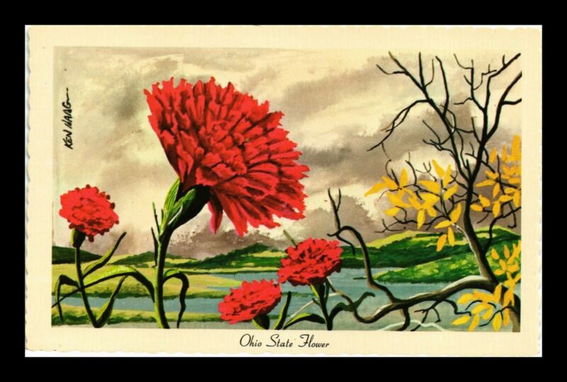 Title (ebay affiliate link): US POSTCARD OHIO STATE FLOW RED CARNATION IN BLOOM SCALLOPED EDGE