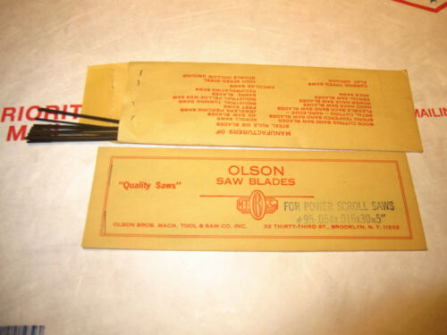 Title (ebay affiliate link): VINTAGE OLSON BROS. MACHINE TOOL & SAW CO. SCROLL SAW BLADES 24 EA. GOOD COND.
