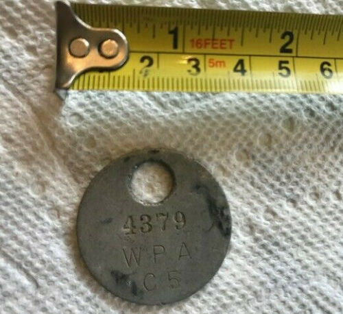 Title (ebay affiliate link): 1930s Works Project Administration WPA tag # 4379 C5 Aluminum