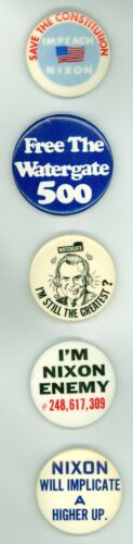 5 Vintage 1970''s Nixon Impeachment/Watergate Political Pinback Buttons SAVE
