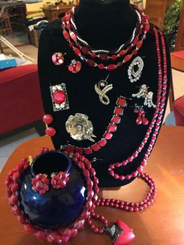 Title (ebay affiliate link): Vintage Antique Jewelry Lot of Red Crystal & Opalescent