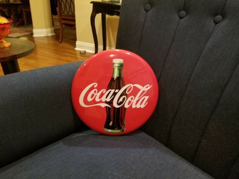 Title (ebay affiliate link): Vintage 16" Coca Cola Button Sign Coke Bottle Enameled Nice One!