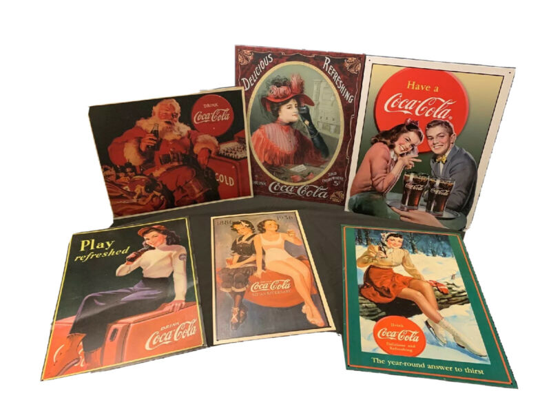 Lot of 6 Vintage Coca-Cola Tin Signs