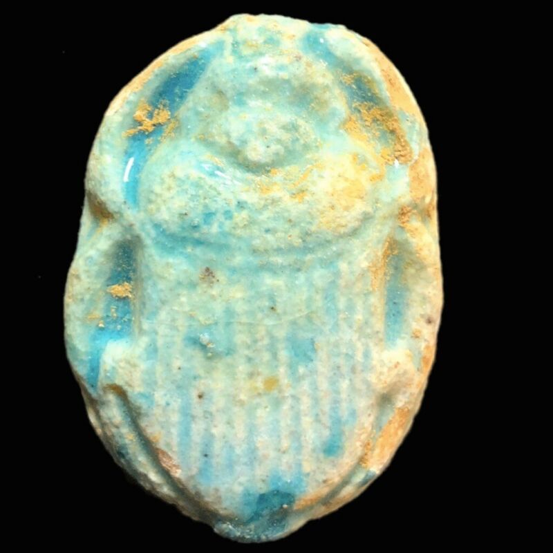 Title (ebay affiliate link): BEAUTIFUL ANCIENT EGYPTIAN BLUE GLAZED SCARAB 300 BC (3)