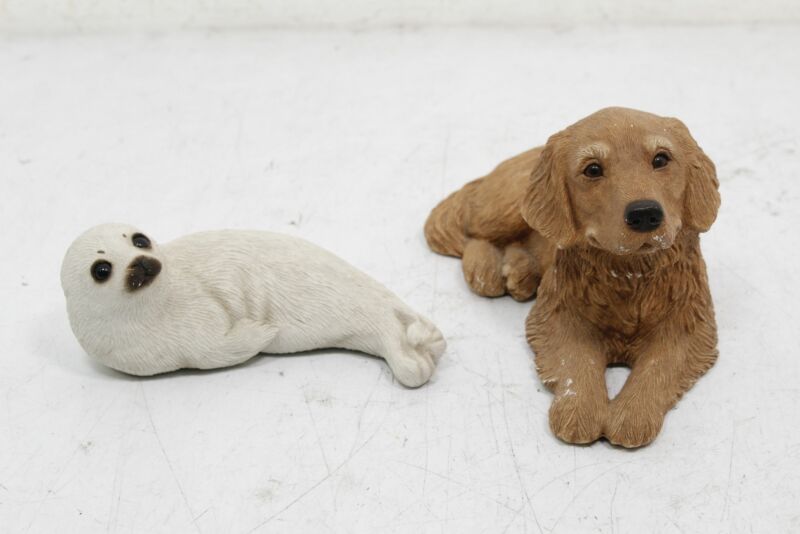 Vintage Sandicast Statue Figurines Dog & Seal Sandra Brue