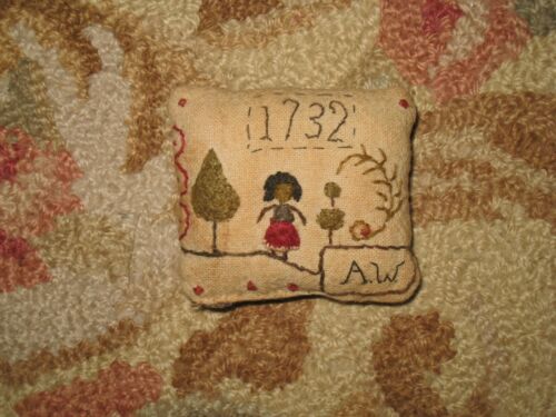 Title (ebay affiliate link): Primitive tiny Sampler Pillow~1732~ Miss Annie Withers~ Simple Folk Art